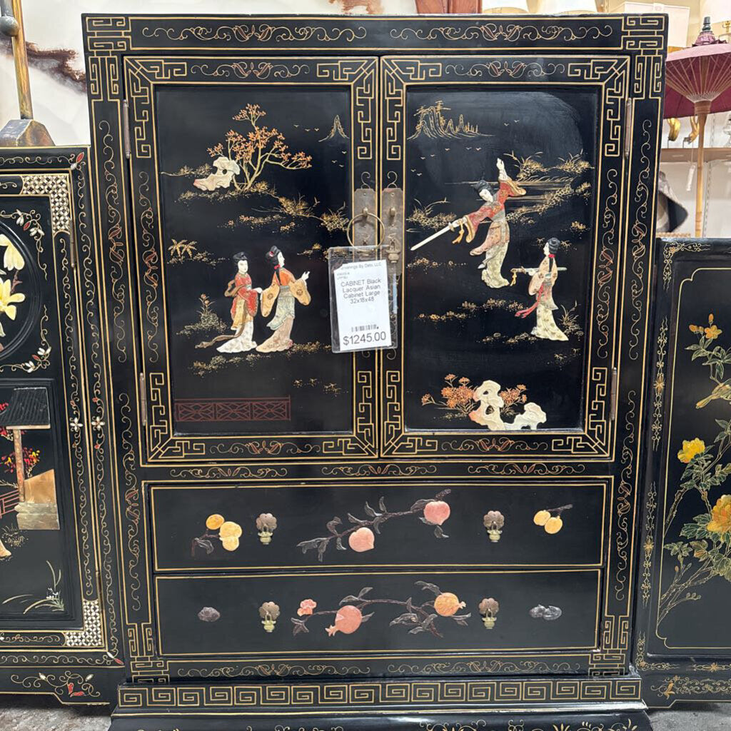 Black Lacquer Asian Cabinet Large