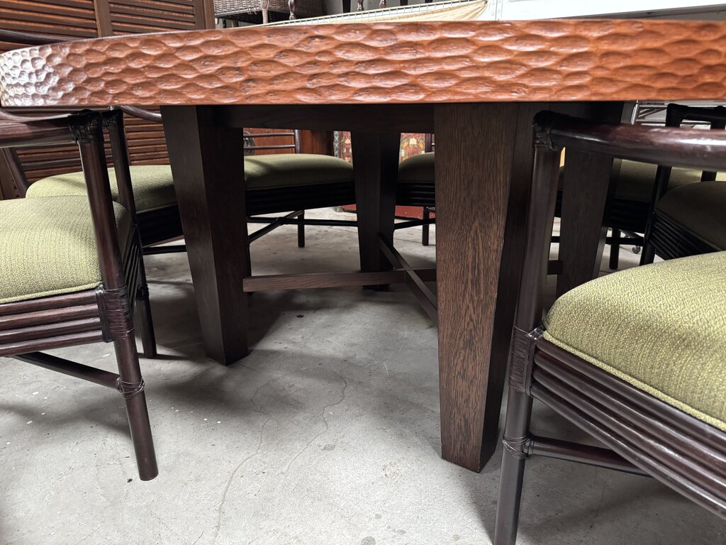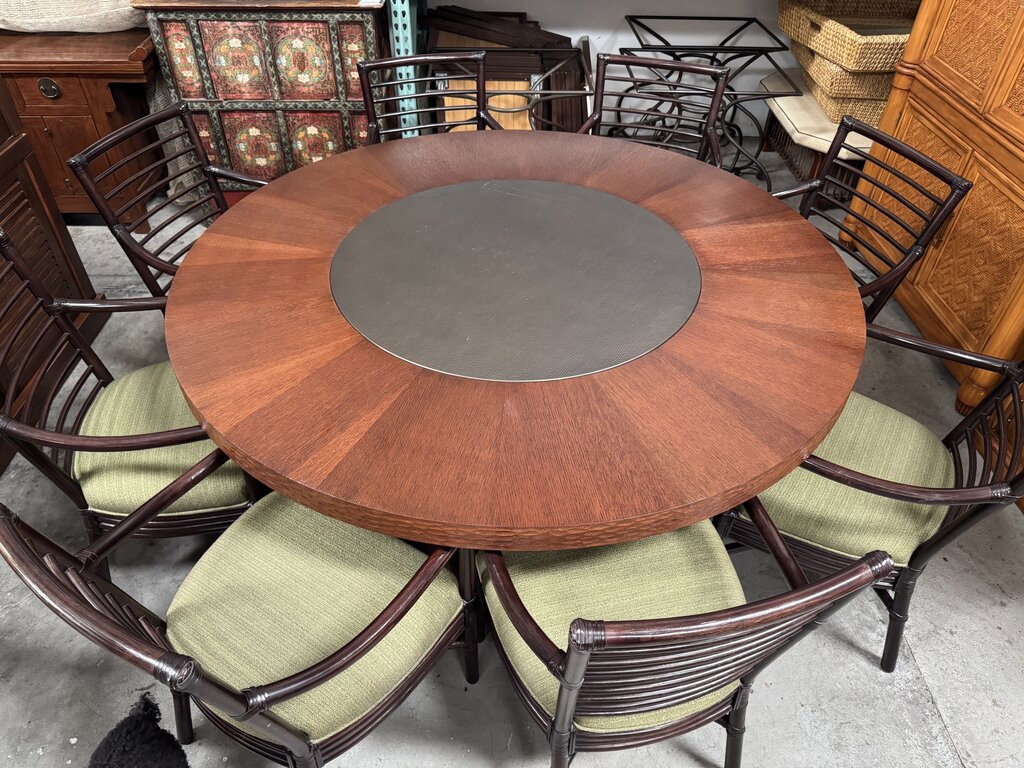 Berman Rosetti Helios Round Carved Wood with Pedestal Base and 8 McGuire Chairs