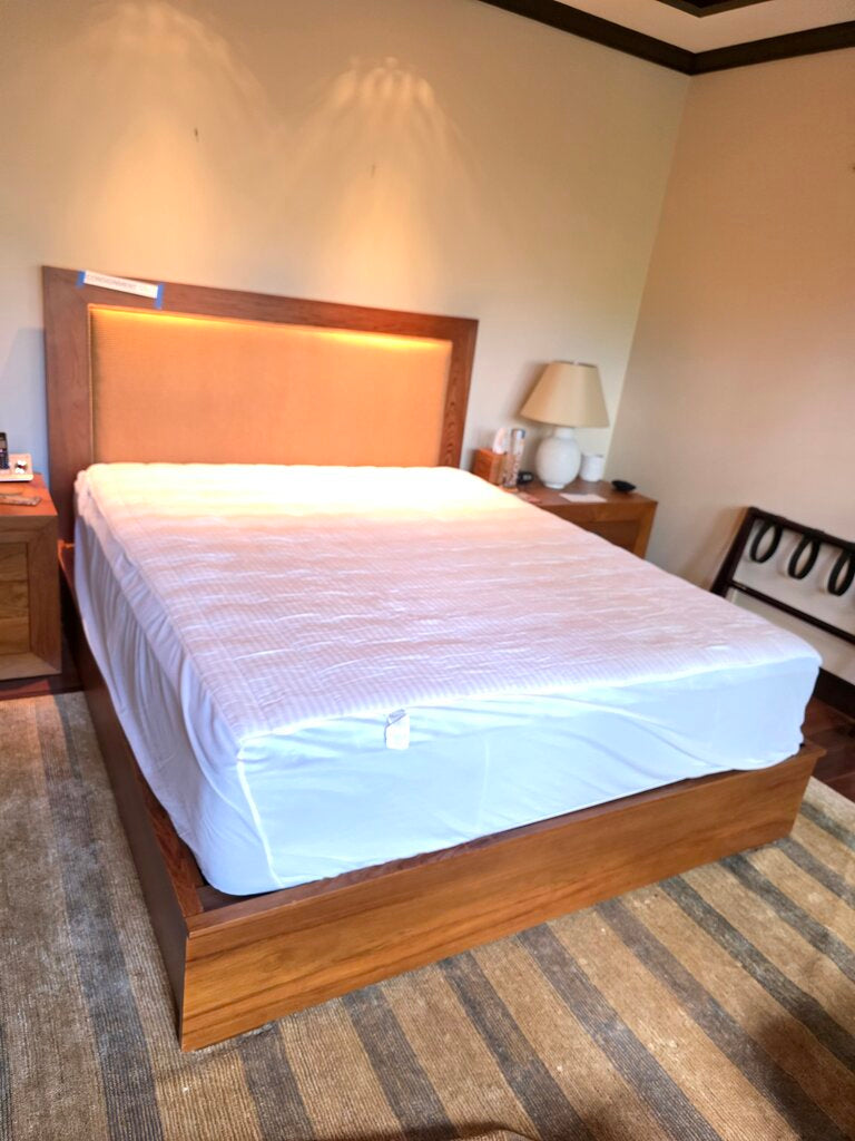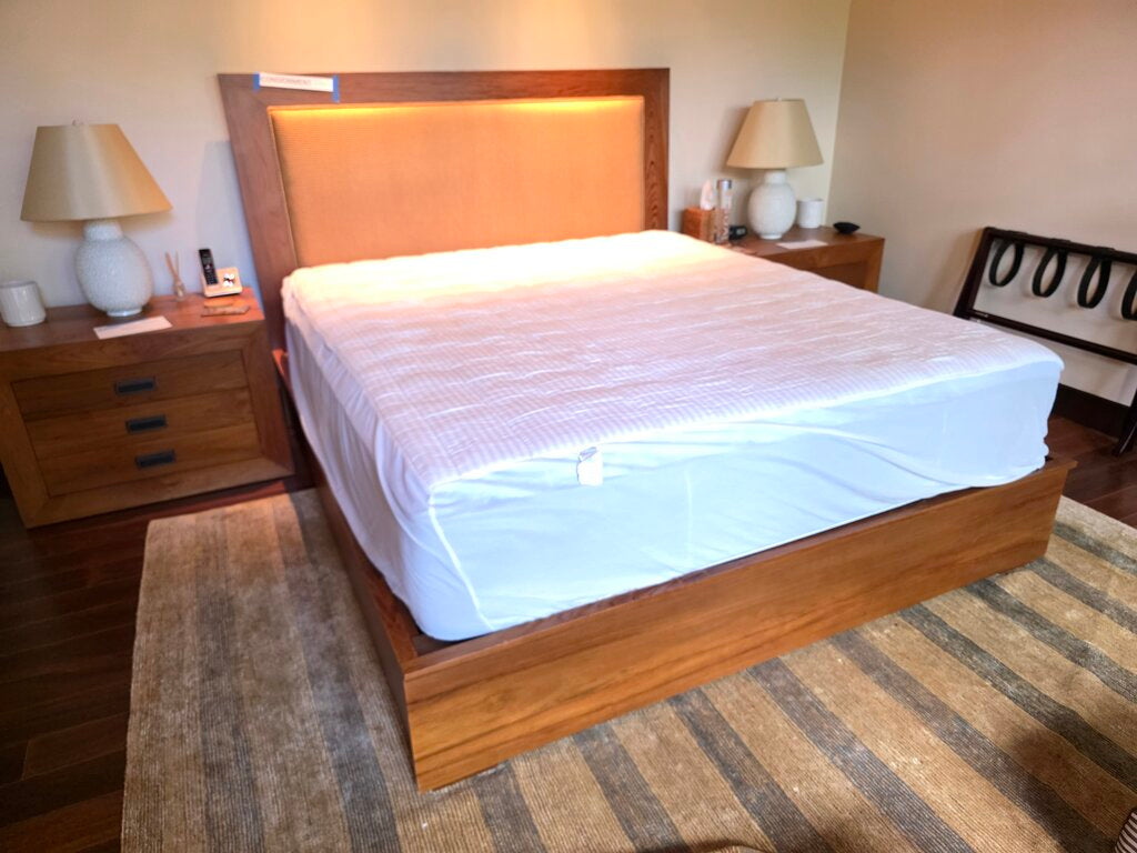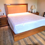 Solid Wood King Platform Bed Frame with Upholstered Headboard